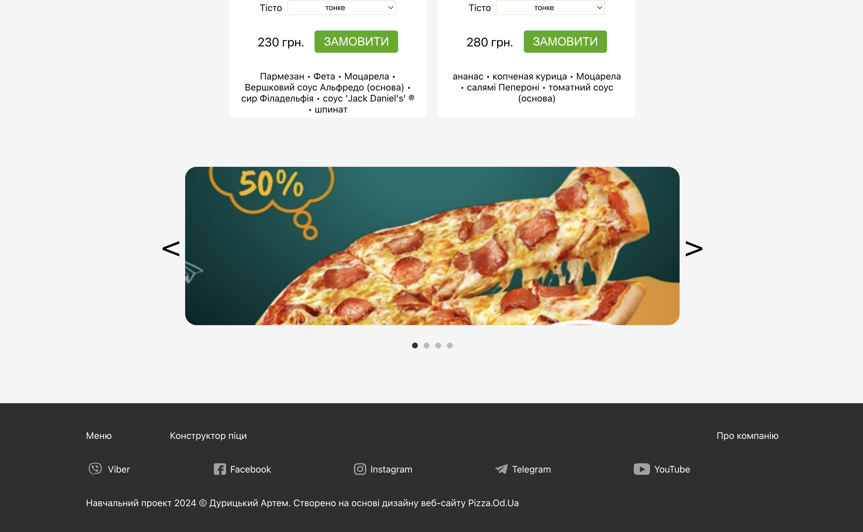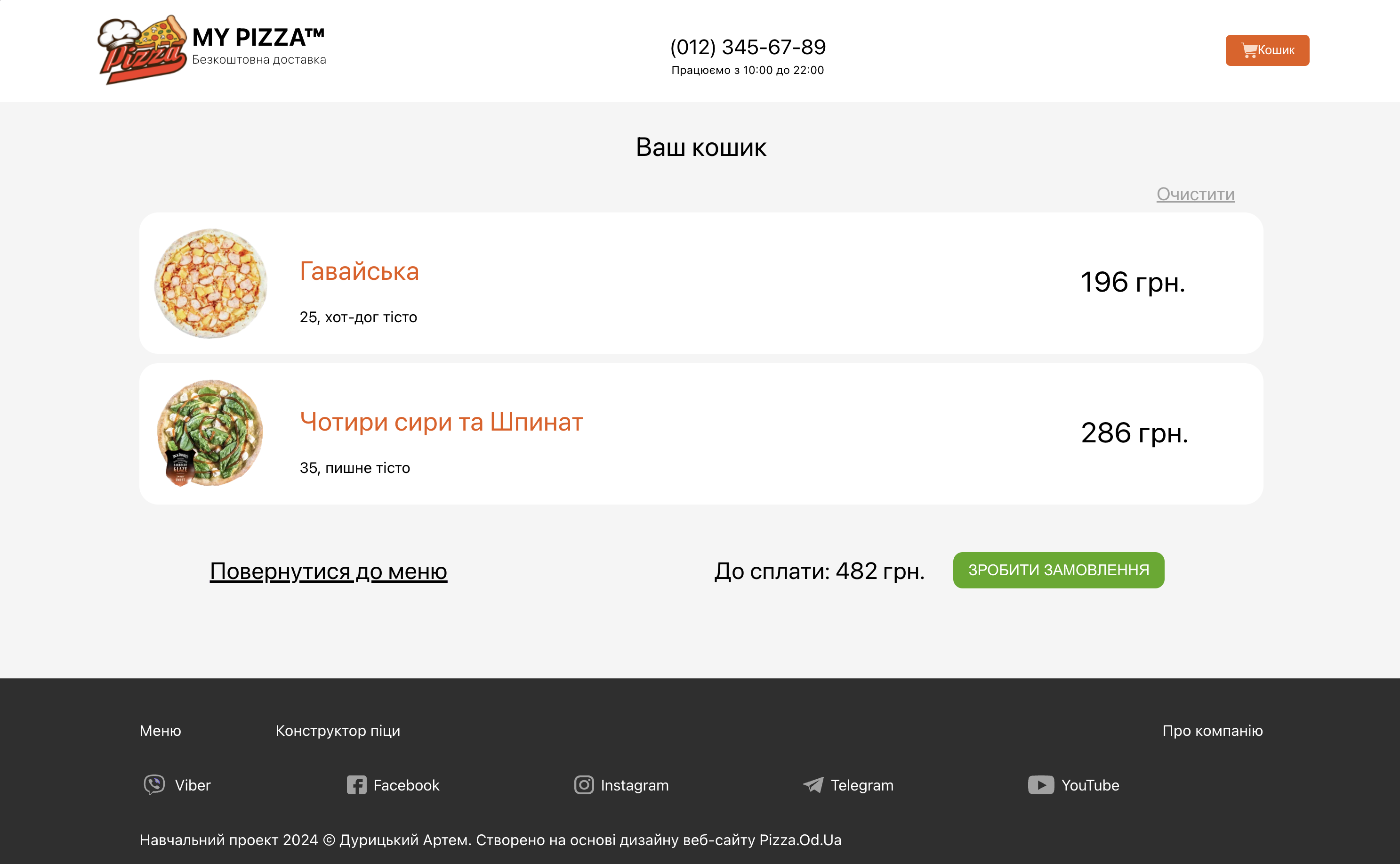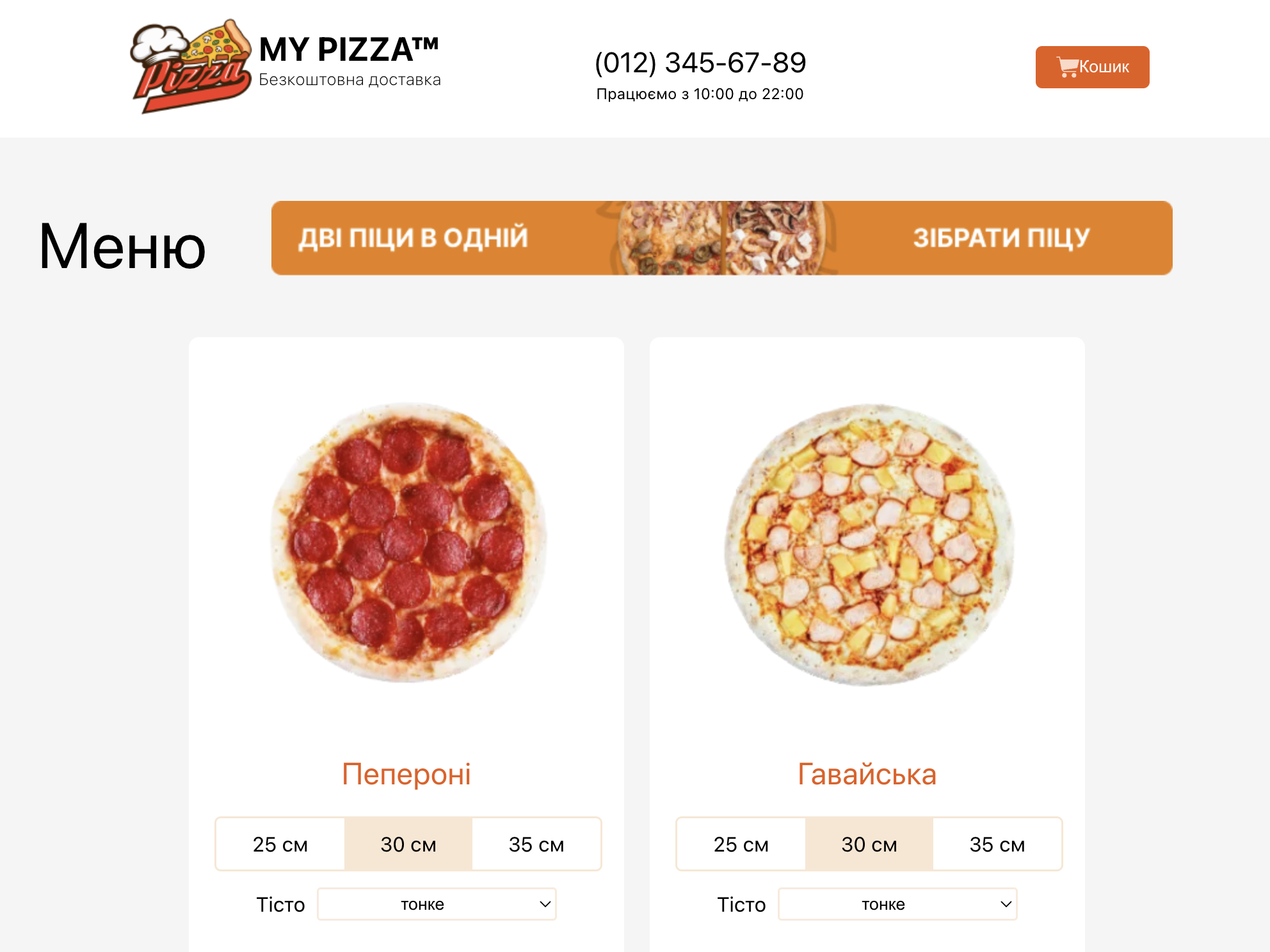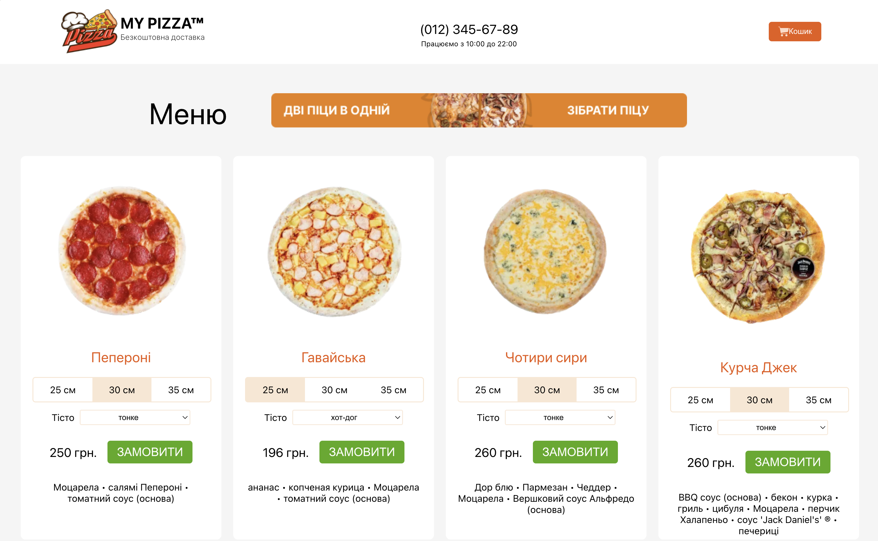 Pizzeria is a feature-rich website designed to simulate a real pizza-ordering experience. Developed with TypeScript, it includes sections like a menu, combo offers, and a shopping cart, drawing inspiration from Pizza.Od.UA to provide a realistic learning environment.